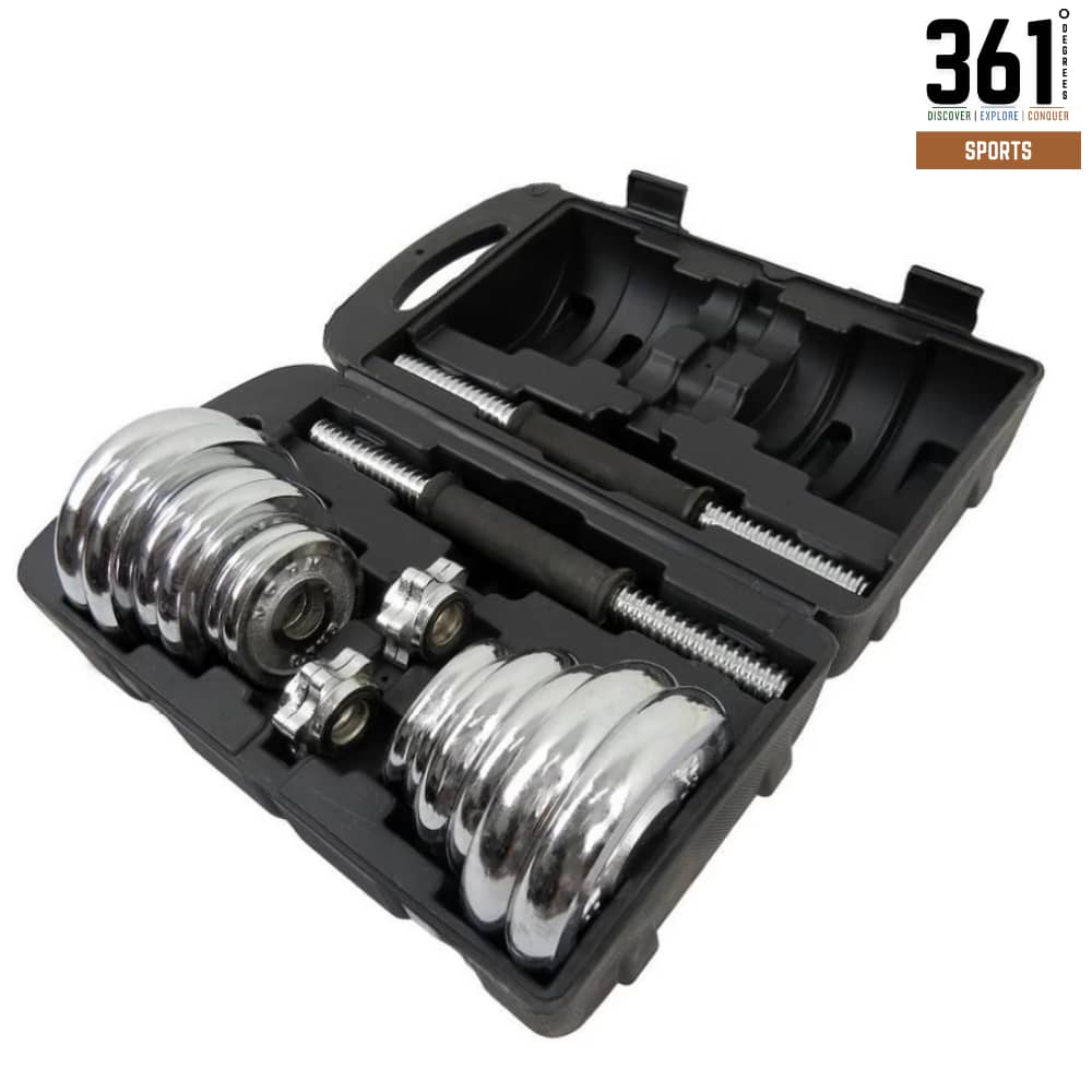 20 kg Chrome Plated Iron Dumbbell and Rod Set with Carrying Case